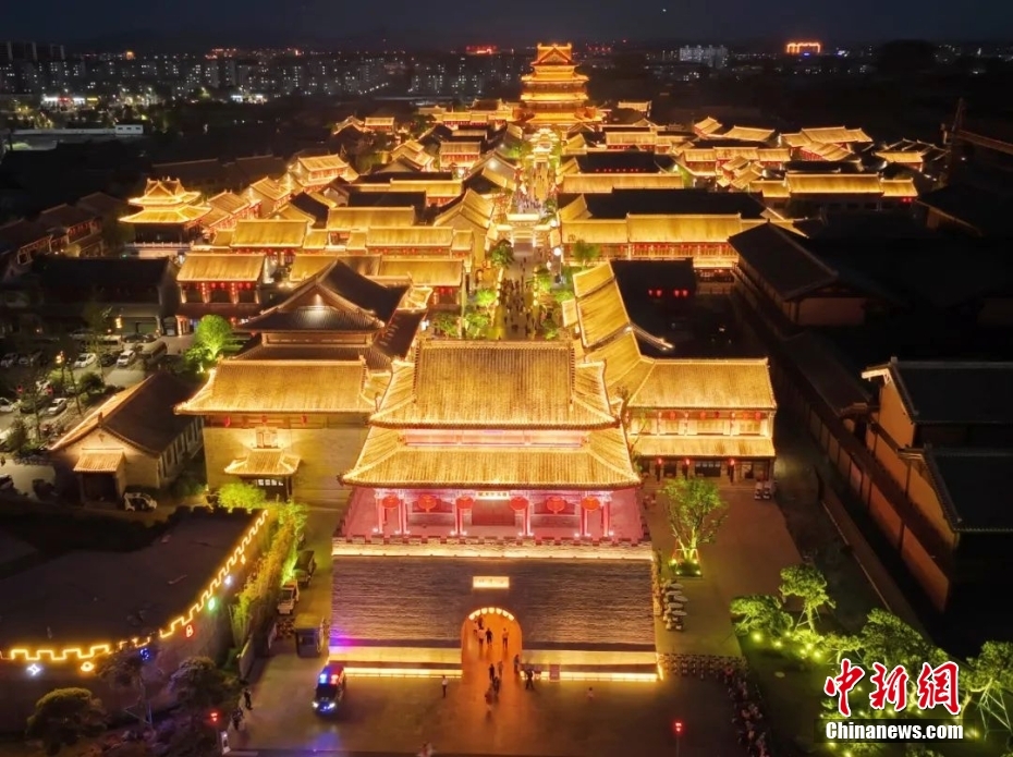 山東日照莒縣歷史悠久,位于該地的莒國古城有春秋第一城之稱。如今,“煥然一新“的莒國古城按照莒地歷史文脈傳承,建設莒王宮、城陽王府、雕龍苑、文昌閣等十大景點,立體展現(xiàn)春秋、漢、唐、明、清建筑藝術和宮廷、軍事、科舉、市井等文化,項目入選山東省新舊動能轉(zhuǎn)換、鄉(xiāng)村振興、文化旅游三個重大項目庫。圖為航拍日照莒國古城夜色。(圖片來源:中新圖片)中新社記者 毛建軍 攝