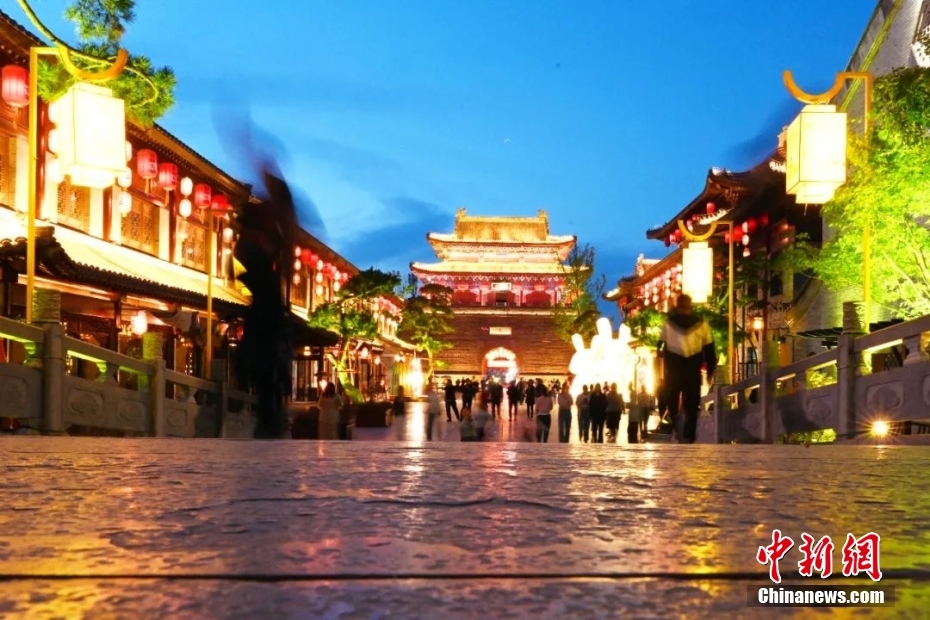 莒國古城夜色流光溢彩。中新社記者 毛建軍 攝