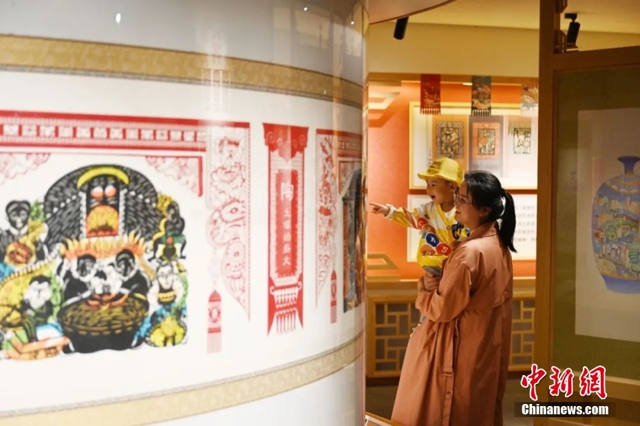 小朋友被非遺剪紙展吸引。中新社記者 毛建軍 攝
