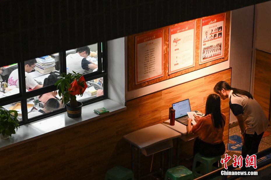重慶十一中老師在高三年級教室走廊開展“擺攤式”輔導(dǎo)。何蓬磊 攝