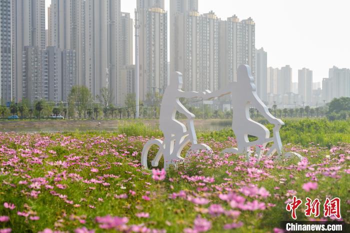 湖北武漢:2萬平方米波斯菊花海在漢江灣盛放(3)