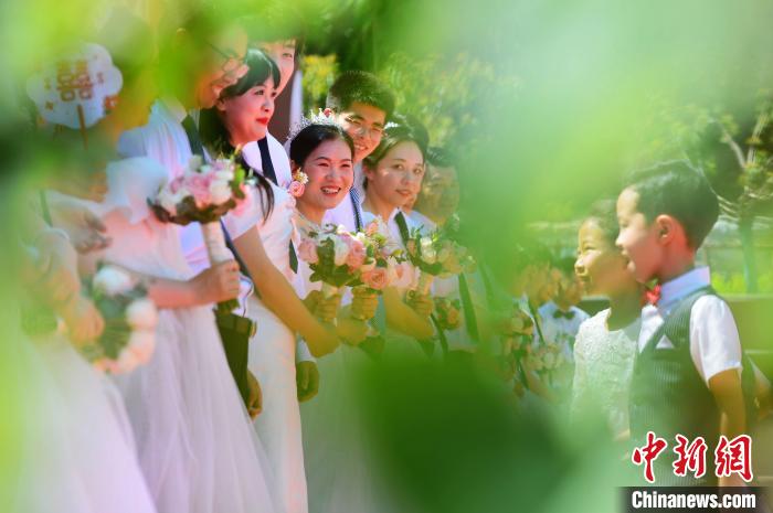 集體婚禮新人幸福洋溢。 王海濱 攝