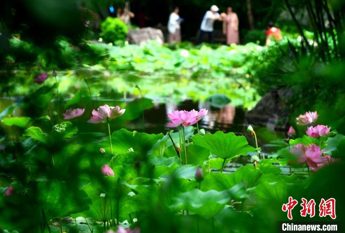 6月5日,福州市茶亭公園盛開(kāi)的荷花吸引民眾前來(lái)觀賞。福州茶亭公園正舉辦第23屆荷花展,集中展示近200個(gè)品種,吸引了眾多游客前來(lái)賞花拍照。張斌 攝