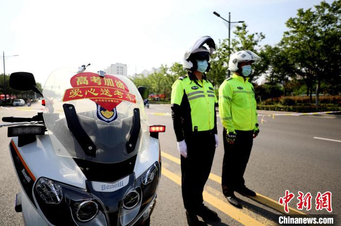 棗莊市臺兒莊公安分局交警大隊組織“愛心送考車”,為考生提供有序、暢通、安靜的道路交通環(huán)境。 張嚴新 攝