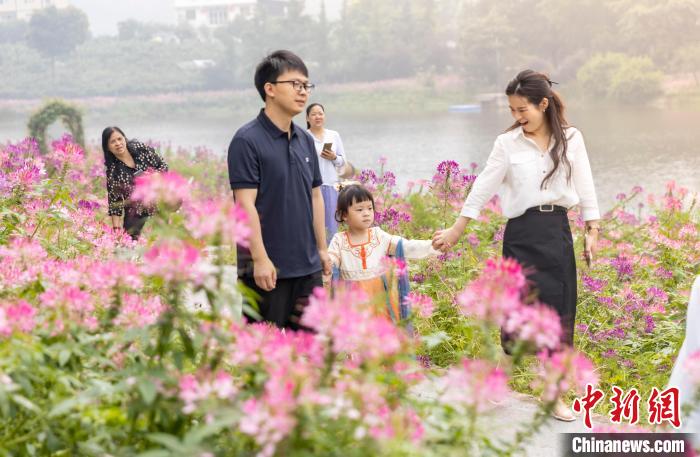 圖為游人漫步醉蝶花花海!⒓o(jì)湄 攝