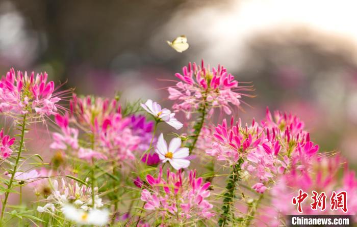 圖為醉蝶花開吸引蝴蝶。 劉紀(jì)湄 攝