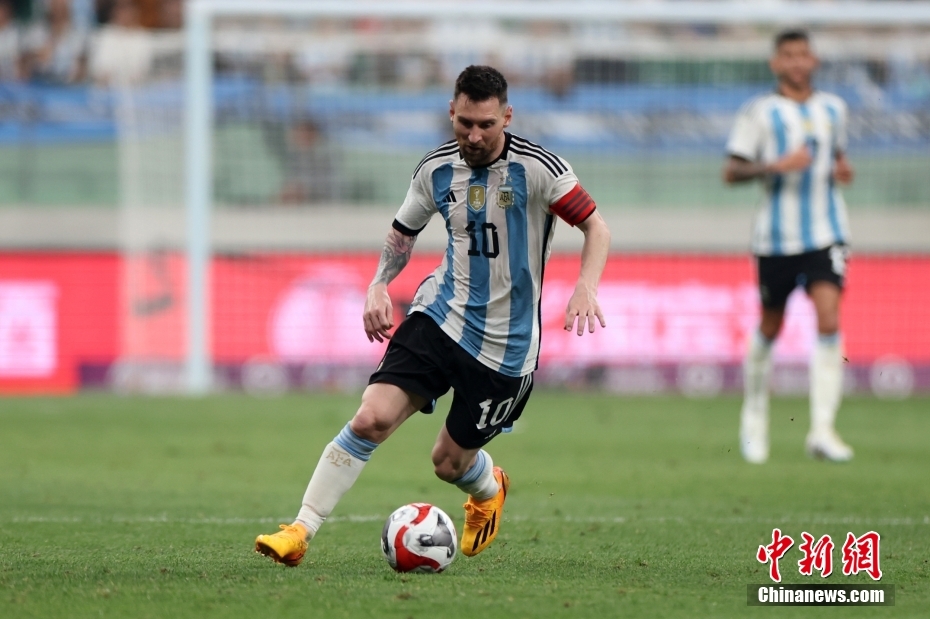 6月15日,阿根廷隊球員梅西在比賽中。當日,備受中國球迷期待的阿根廷隊與澳大利亞隊的國際足球邀請賽在北京“新工體”拉開帷幕。開場僅81秒,梅西左腳內(nèi)腳背射門,皮球應(yīng)聲入網(wǎng)。據(jù)阿根廷當?shù)孛襟w報道,這個進球也是梅西職業(yè)生涯中的最快進球。下半場第68分鐘,阿根廷隊利用角球,佩澤拉頭球破門。最終,阿根廷隊2:0戰(zhàn)勝澳大利亞隊。中新社記者 富田 攝