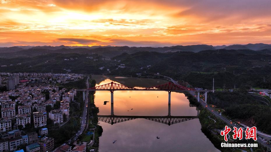 湖北宜昌:絢麗晚霞“扮靚”峽江(3)