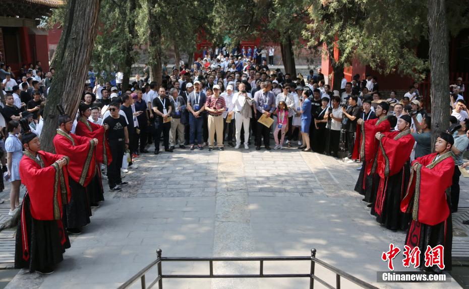 正在山東曲阜參加世界互聯(lián)網(wǎng)大會(huì)數(shù)字文明尼山對(duì)話的中外嘉賓,來(lái)到孔廟孔府體驗(yàn)中華優(yōu)秀傳統(tǒng)文化。沙見(jiàn)龍 攝