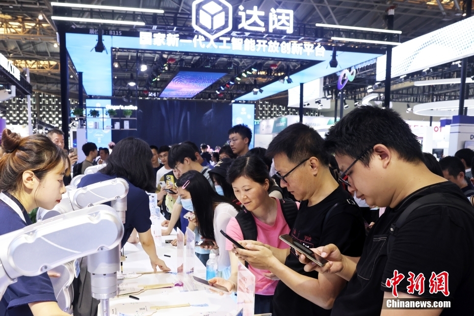 7月6日,2023世界人工智能大會(huì)(WAIC)在上海開(kāi)幕。本屆大會(huì)主題是“智聯(lián)世界 生成未來(lái)”,參展企業(yè)數(shù)量、展覽面積均創(chuàng)歷屆之最。大會(huì)圍繞大模型、生成式人工智能、科學(xué)智能、具身智能、元宇宙等前沿話題展開(kāi)前瞻性探討,展望“智變”后的人類文明全新形態(tài)。圖為觀眾參觀展覽。中新社記者 湯彥俊 攝