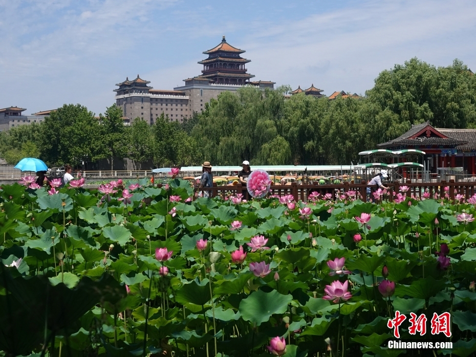 2023年7月4日,“小暑”節(jié)氣臨近,北京蓮花池公園的荷花雨后更顯嬌艷,美不勝收。圖/CNSphoto 玉龍 攝