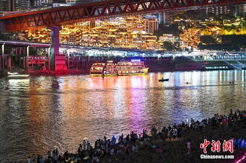 7月18日晚,民眾在重慶江北嘴江灘公園夜市賞景、游玩。入夏以來,山城重慶“夜經(jīng)濟(jì)”持續(xù)升溫,夜間消費(fèi)活力涌動(dòng)。中新社記者 何蓬磊 攝