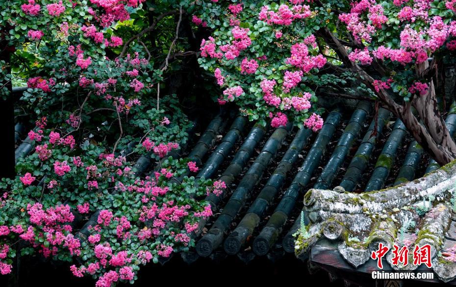 紫薇花綴滿枝頭,與近600年歷史的報恩寺相得益彰。