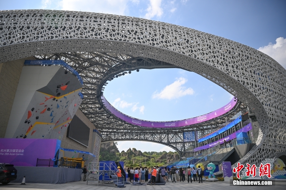 9月17日,羊山攀巖中心引人參觀。浙江紹興柯橋羊山攀巖中心所在地曾是廢棄采石場,如今已蝶變?yōu)楹贾輥嗊\(yùn)會(huì)攀巖項(xiàng)目的比賽場館,并將產(chǎn)生6枚金牌。中新社記者 王剛 攝