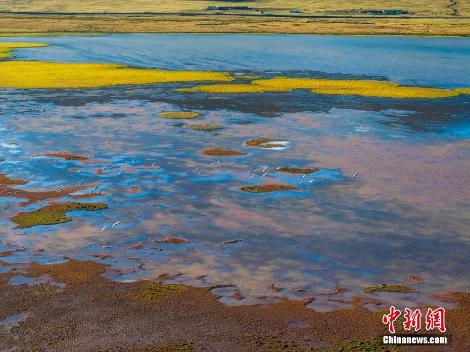9月25日,西藏那曲措那風(fēng)景如畫,吸引了黑頸鶴、天鵝等眾多鳥(niǎo)類在此棲息。圖為鳥(niǎo)兒在水中嬉戲。圖/CNSphoto 黃倫斌 攝