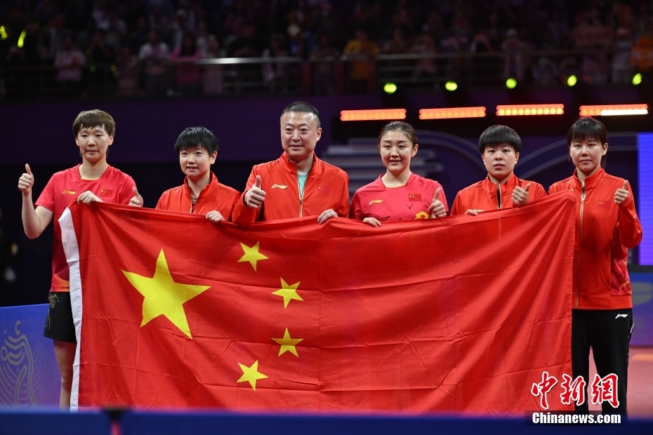 9月26日,杭州第19屆亞運會乒乓球女子團體決賽在拱墅運河體育公園體育館舉行。中國隊以3比0戰(zhàn)勝日本隊,實現(xiàn)亞運會女乒團體五連冠。圖為中國隊在賽后合影。中新社記者 駱云飛 攝
