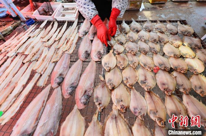 漁民擺放舌鰨魚進(jìn)行晾曬。王海濱 攝