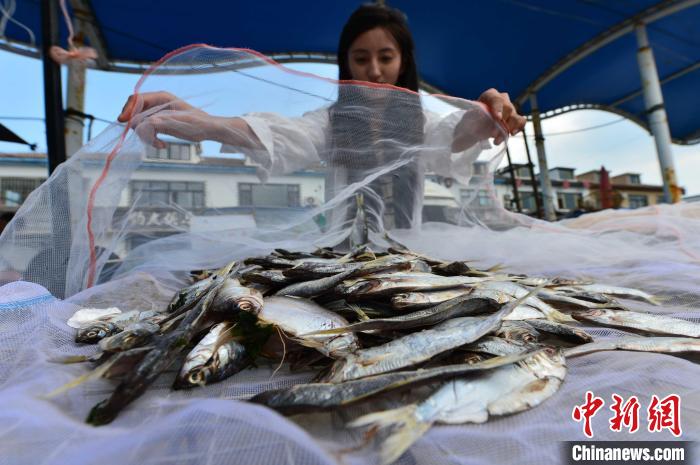 漁民為晾曬的魚干蓋上防蠅網(wǎng)。王海濱 攝