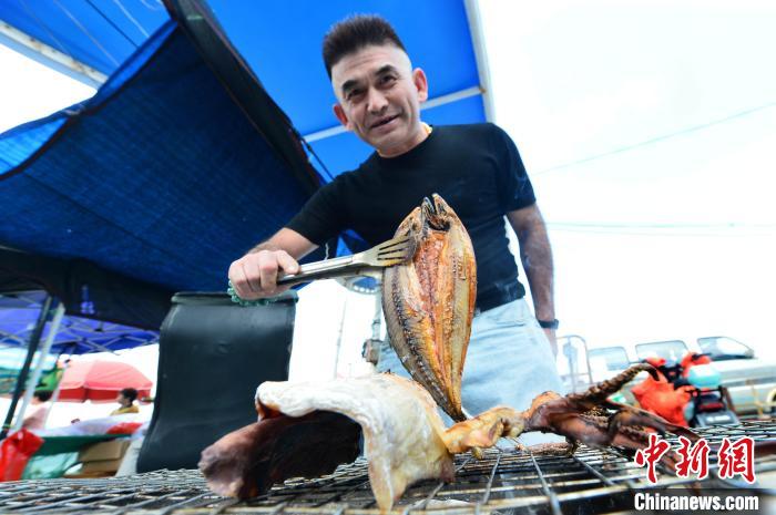 民眾現(xiàn)場烤制魚干美食。王海濱 攝