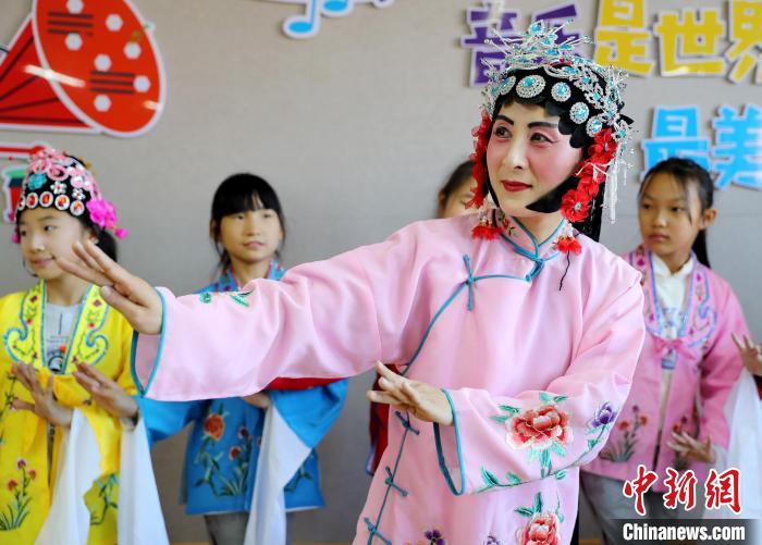 10月20日,山東省臨沂市蘭山區(qū)弦子戲藝術(shù)團(tuán)的演員來到該市棗園中心小學(xué),為該校弦子戲興趣小組的學(xué)生授課。張進(jìn)剛 攝