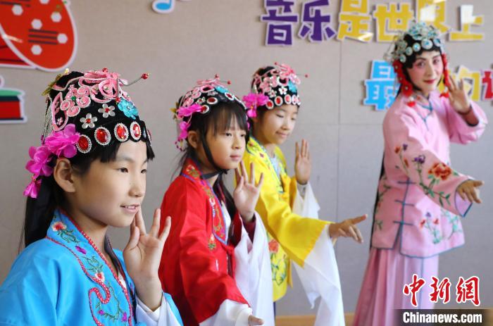 10月20日,山東省臨沂市蘭山區(qū)弦子戲藝術(shù)團的演員來到該市棗園中心小學(xué),為該校弦子戲興趣小組的學(xué)生授課。張進剛 攝