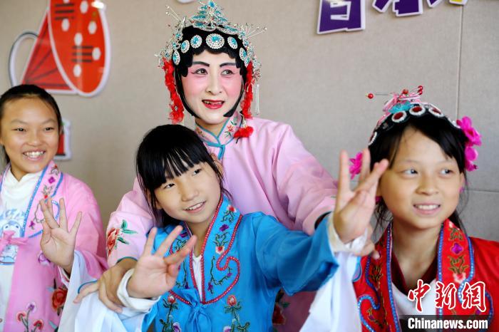 10月20日,山東省臨沂市蘭山區(qū)弦子戲藝術(shù)團的演員來到該市棗園中心小學,為該校弦子戲興趣小組的學生授課。藝術(shù)團演員指導學生練習弦子戲。張進剛 攝