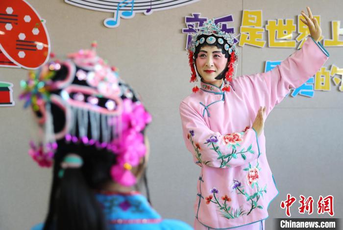 10月20日,山東省臨沂市蘭山區(qū)弦子戲藝術(shù)團(tuán)的演員為棗園中心小學(xué)弦子戲興趣小組的學(xué)生授課。張進(jìn)剛 攝