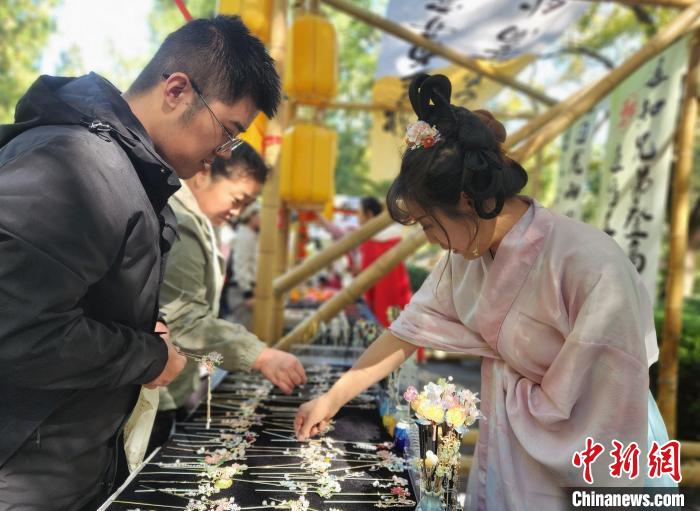 商家身穿漢服賣古風發(fā)簪。趙曉 攝