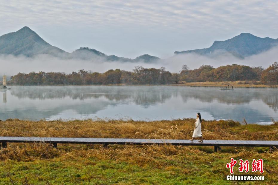 近日,在湖北神農(nóng)架林區(qū),霧氣環(huán)繞群山,千山萬(wàn)壑層林盡染,秋色如畫(huà)。神農(nóng)架位于湖北省西部,森林覆蓋率高達(dá)91%以上。當(dāng)?shù)負(fù)碛兄袊?guó)中部最大的原始森林和世界上最完整的垂直自然帶譜,是第四紀(jì)冰川時(shí)期各種動(dòng)植物的避難所和棲息地。圖為神農(nóng)架展現(xiàn)絕美秋色。薛揚(yáng) 攝
