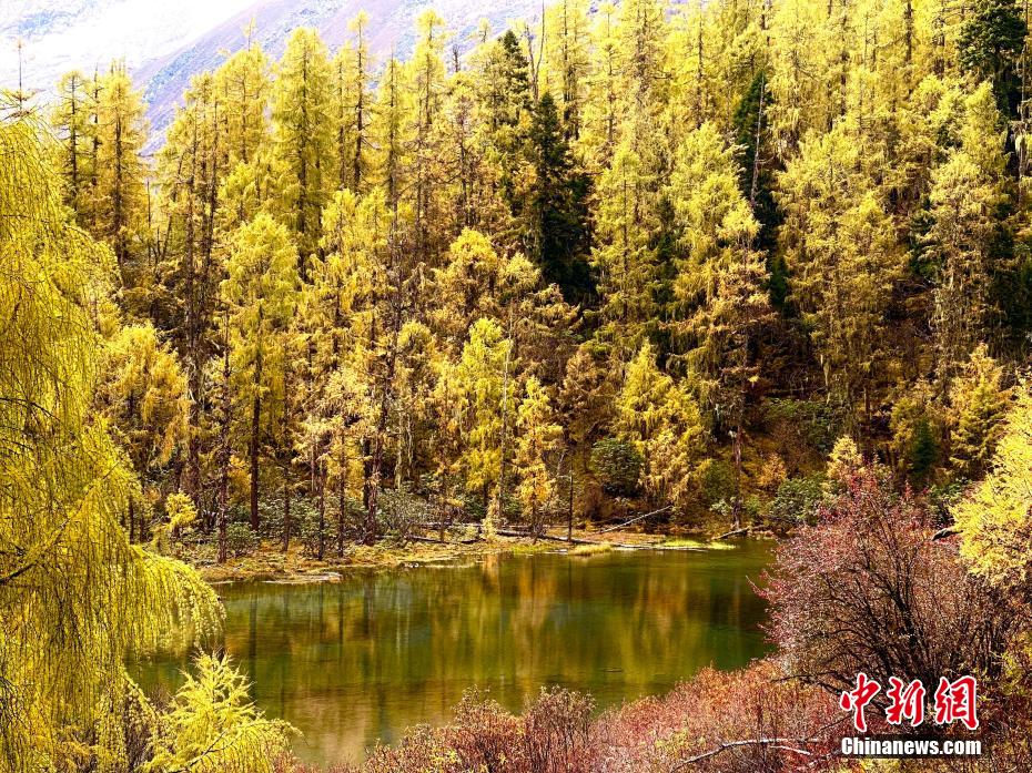 彩林與海子相映,宛如一幅如詩的畫卷。陳邦亮 攝