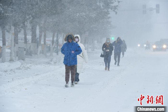 內(nèi)蒙古通遼市,市民雪中出行! ⊥貊 攝
