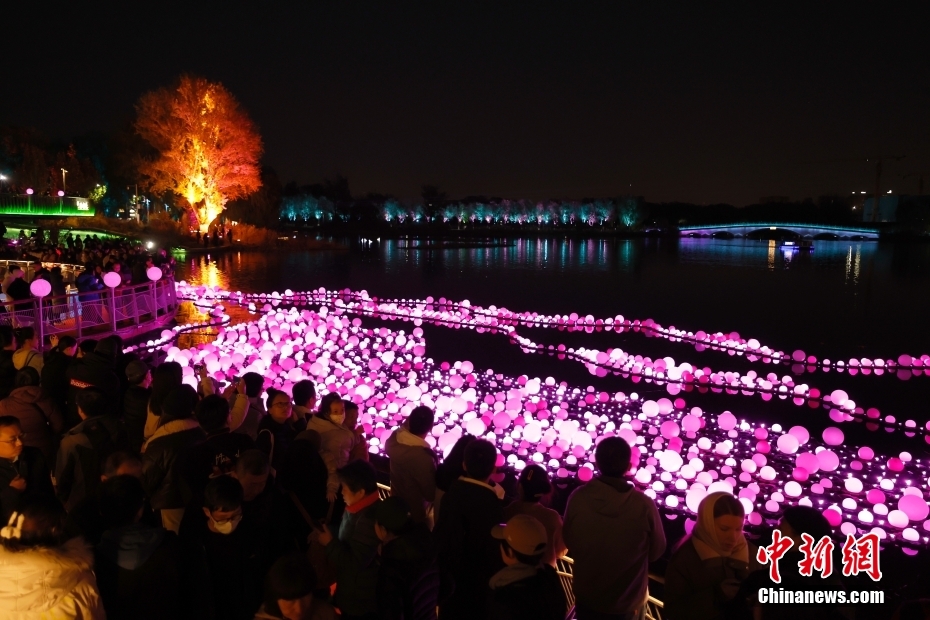 11月19日,北京市民在亮馬河畔欣賞燈光秀。近日,2023北京朝陽國際燈光節(jié)開幕,通過“五光十色”的光影場景和系列文商旅活動(dòng),展示北京朝陽的“中國潮”、“國際范兒”和“煙火氣”。中新社記者 富田 攝