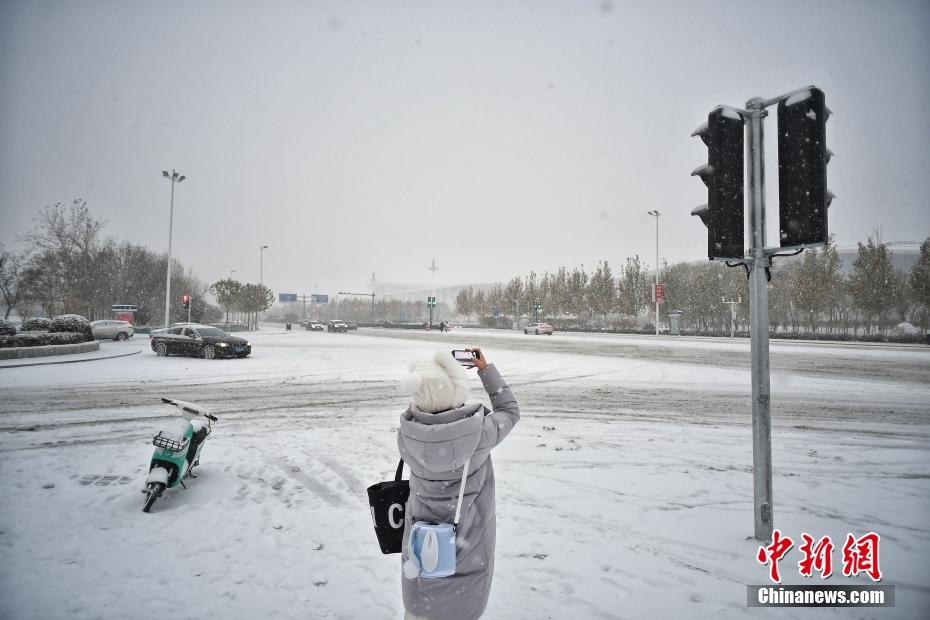 12月14日,天津,市民在街邊拍攝雪景。當日,中央氣象臺升級發(fā)布寒潮橙色預警,這是最高級別的寒潮預警,也是今冬首個寒潮橙色預警。中新社記者 佟郁 攝