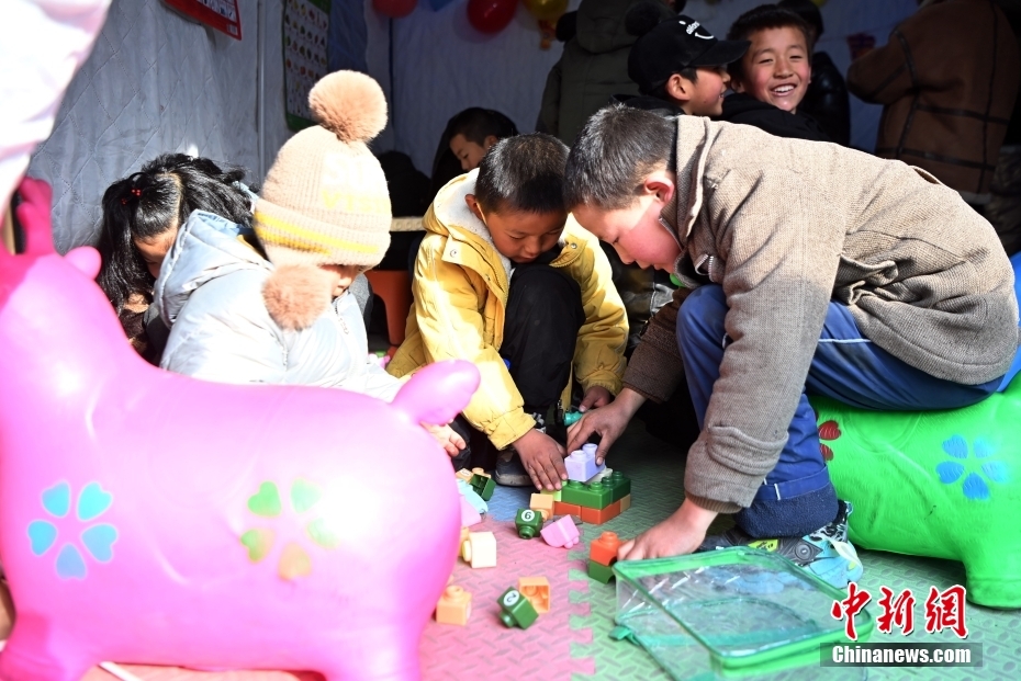 12月23日,小朋友們在“愛心書屋”內(nèi)繪畫。甘肅積石山縣6.2級(jí)地震發(fā)生后,愛心企業(yè)在該縣大河家鎮(zhèn)臨時(shí)安置點(diǎn)給小朋友們開設(shè)了“愛心書屋”,通過開展閱讀、繪畫、玩游戲等活動(dòng),幫助孩子們擺脫地震帶來的緊張和焦慮情緒。中新社記者 九美旦增 攝