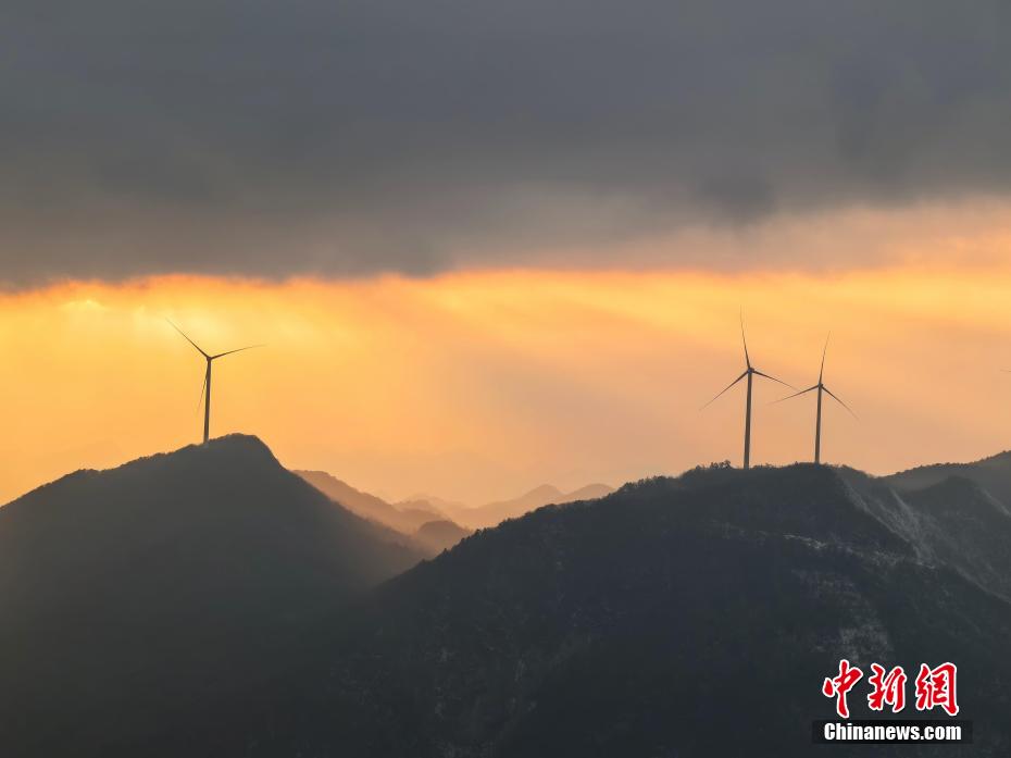 湖北五峰現(xiàn)“丁達(dá)爾晚霞”美景。董曉斌 攝