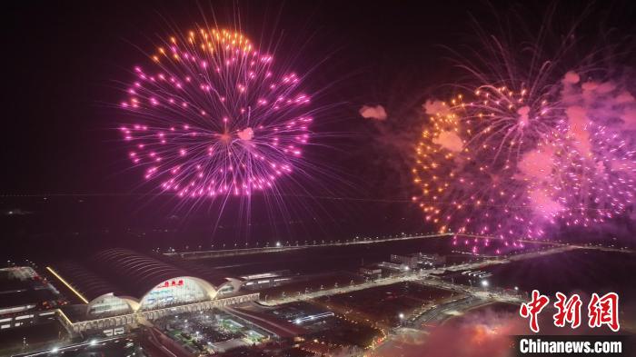 12月27日,南昌東站迎來(lái)了一場(chǎng)炫彩奪目的音樂(lè)煙花秀,以絢麗之姿笑迎四海賓朋,共赴山河。蔡恒輝 攝