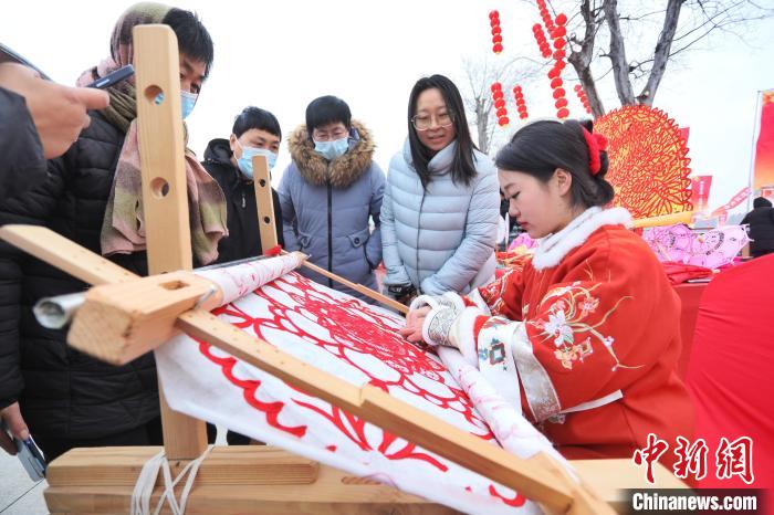 在泰安啟動(dòng)儀式現(xiàn)場(chǎng)的非遺文創(chuàng)展區(qū),非遺傳承人們以“龍騰泰山·樂享非遺”為主題,現(xiàn)場(chǎng)展演、展示、展銷。陳陽(yáng) 攝