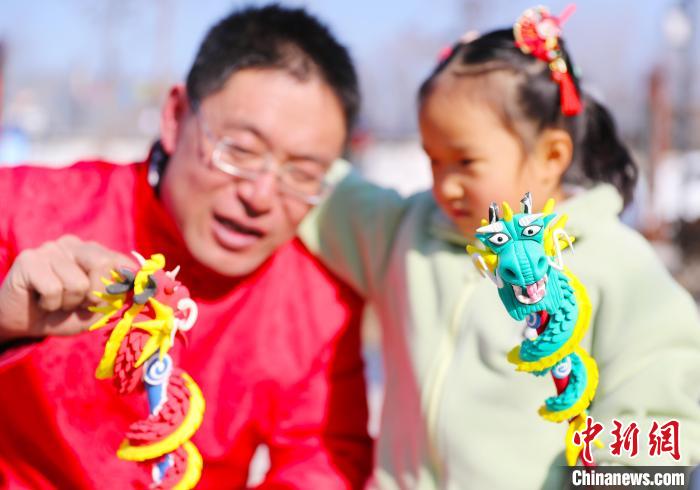 一位小朋友學(xué)習(xí)“祥龍”面塑作品。張進(jìn)剛 攝