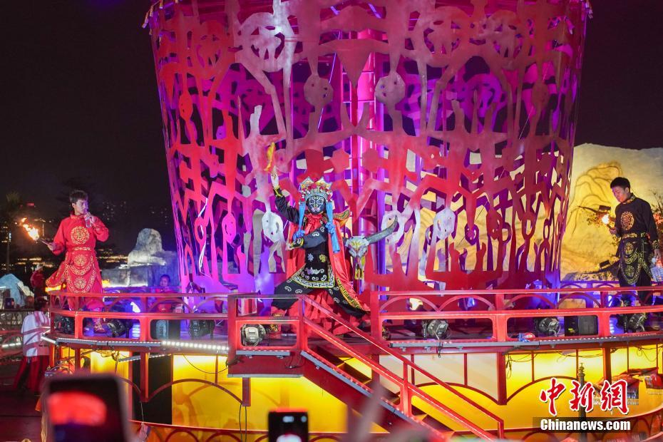 2月17日,廣西南寧,南寧之夜景區(qū)上演變臉表演。春節(jié)期間,南寧之夜景區(qū)上演豐富多彩的非遺表演,為市民和游客增添喜慶熱鬧的年味氛圍。中新社記者 陳冠言 攝