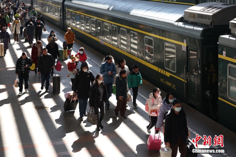 2月16日,江蘇南京,抵達(dá)火車(chē)站的旅客走向出站口。中國(guó)春節(jié)假期接近尾聲,鐵路客流持續(xù)走高。中新社記者 泱波 攝