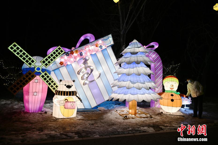 內(nèi)蒙古扎蘭屯市,吊橋公園內(nèi)的“十四冬”主題燈飾。中新網(wǎng)記者 劉文華 攝