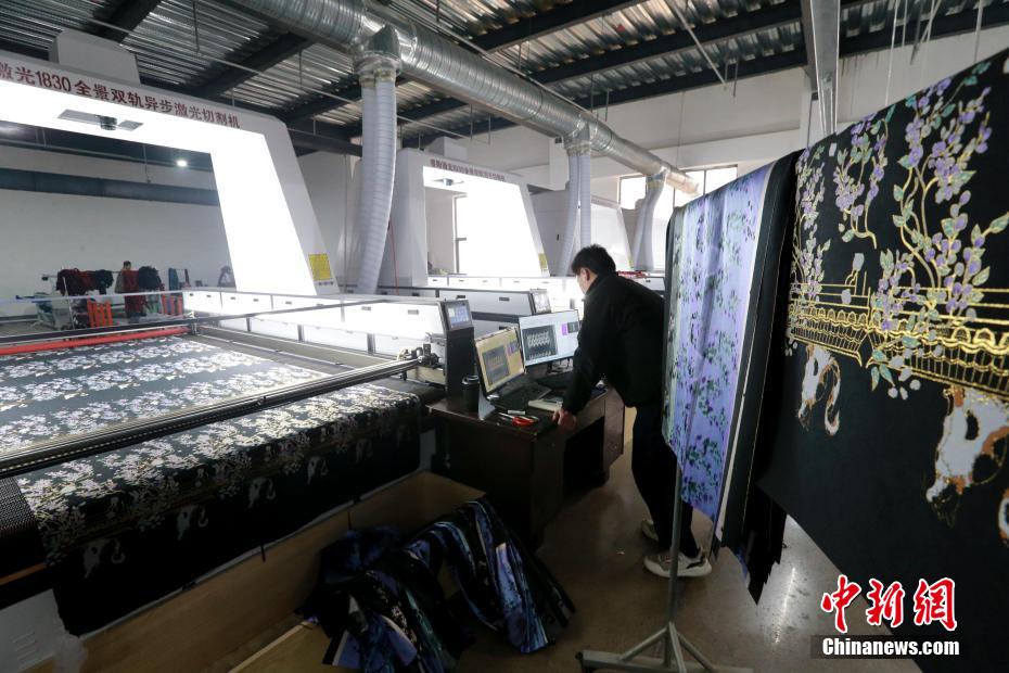 工人正在使用激光切割機(jī)剪裁布料。梁犇 攝