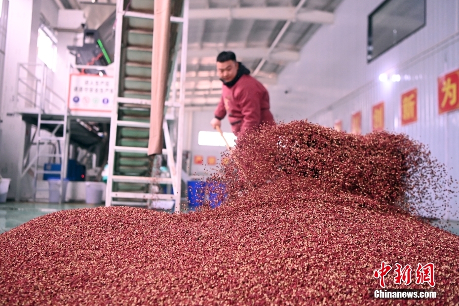 3月17日,在甘肅省天水市甘谷縣一傳統(tǒng)辣椒加工企業(yè)內(nèi),工作人員展示炒制好的辣椒。近日,天水麻辣燙火爆出圈,帶火甘谷辣椒、定西寬粉、花椒等甘肅本地優(yōu)質(zhì)農(nóng)產(chǎn)品。一碗麻辣燙為何深受食客喜愛?與所用產(chǎn)自本地的辣椒、花椒、蔬菜等各種特色食材、佐料密不可分。其中被譽為“麻辣燙靈魂”的油潑辣子和花椒更是不可或缺的佐料。油潑辣子看起來辣,吃起來香,“以香為主、辣中帶香、香里泛辣”為特點的甘谷辣椒是不二選擇。而當?shù)鼗ń穭t以其獨特的麻味和香氣,為麻辣燙增色添味,豐富口感。中新社記者 九美旦增 攝