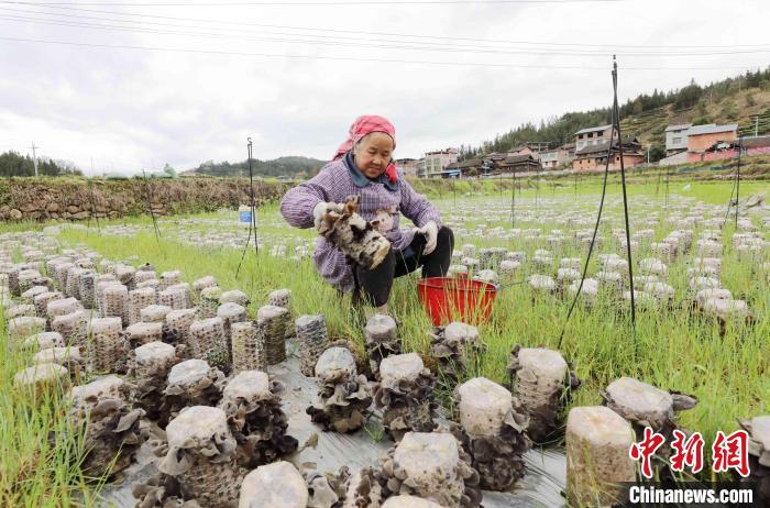航拍村民在田間地頭采收黑木耳。龔普康 攝