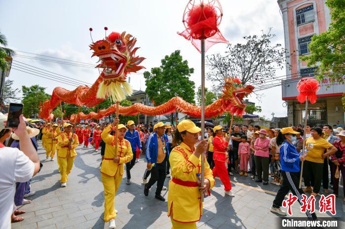 圖為“裝軍巡游”隊伍中舞龍表演。中新網(wǎng)記者 駱云飛 攝