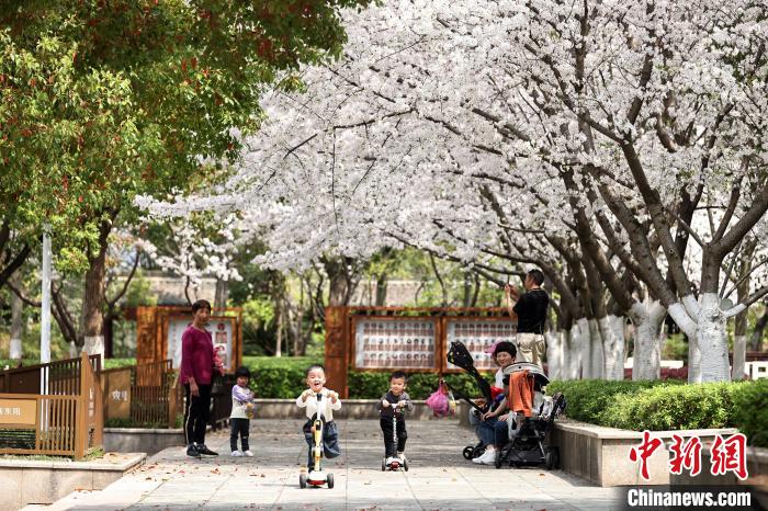 正值春光無限好,浙江金華春花競相綻放。微風吹過、落英繽紛,不少市民前來尋春,感受春日氣息。公園里,白玉蘭“沐浴”在春天的陽光下,充滿盎然生機;櫻花迎風搖曳,引得踏青的游客駐足樹下,細細端詳。胡揚輝 攝