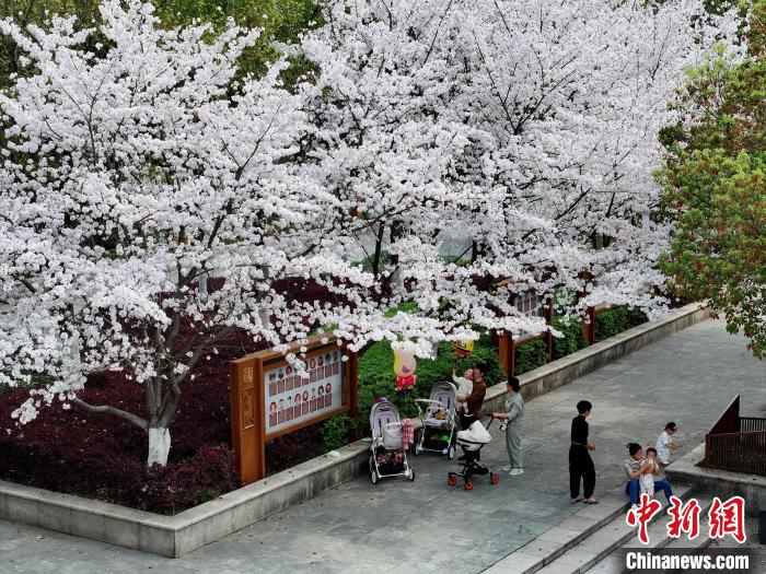 浙江金華東陽市一處公園,櫻花盛開似云錦。胡揚(yáng)輝 攝