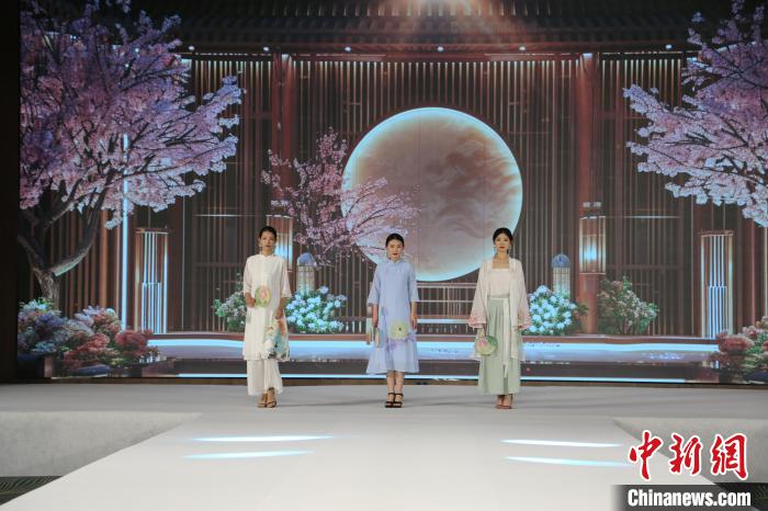 山東菏澤巨野縣4月6日舉行工筆牡丹畫藝術(shù)作品時(shí)裝秀暨“牡丹華服”新品發(fā)布會(huì)。
