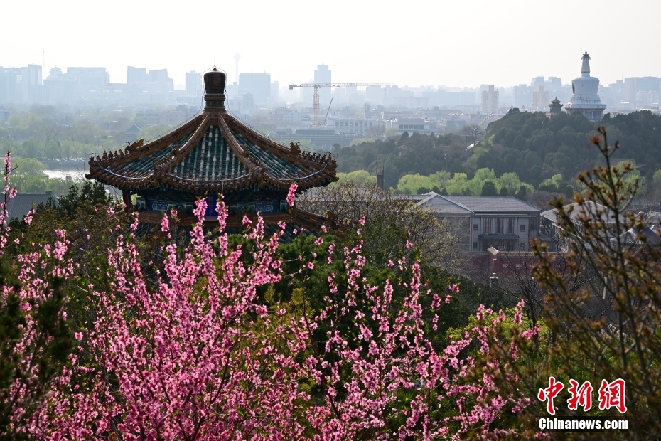 4月6日,從景山公園萬(wàn)春亭俯瞰春花掩映輯芳亭。當(dāng)日,北京春光明媚,中軸線春花盛放,花香滿京城。中新社記者 田雨昊 攝