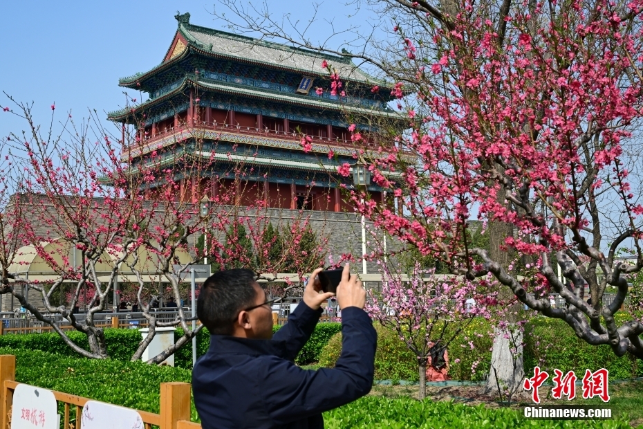 4月6日,游客在天壇公園拍攝春花。當(dāng)日,北京春光明媚,中軸線春花盛放,花香滿京城。中新社記者 田雨昊 攝